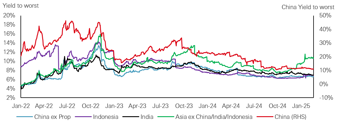 - High-yield spreads remain wide, offering carry opportunities as the asset class evolves post-deleveraging in China’s property sector