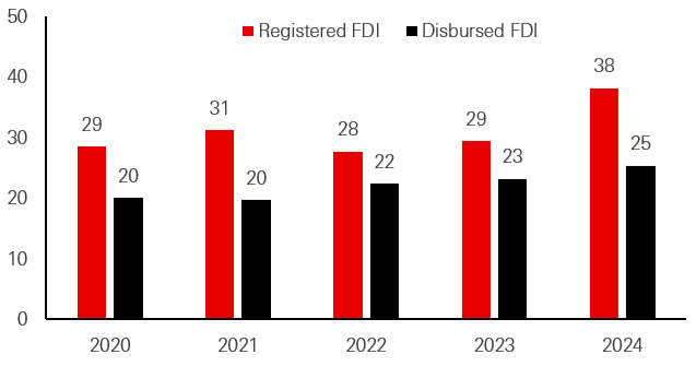 FDI inflow into Vietnam (USDbn)