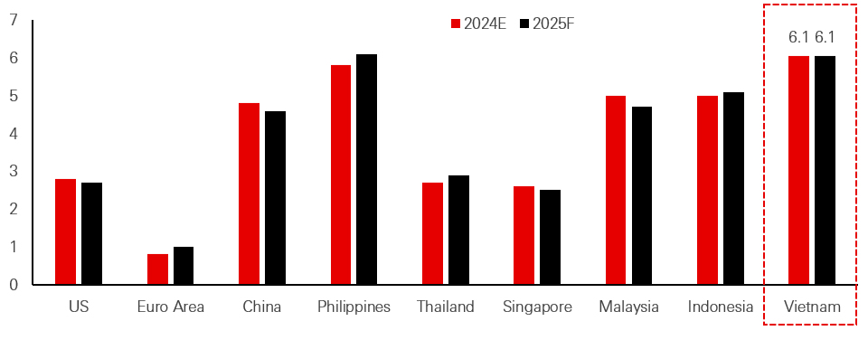 Coinciding with impressive economic growth, strong earnings growth underlies Vietnam’s investment appeal today. According to estimates, total earnings across all sectors will have risen by nearly 20 per cent year-on-year in Q4 2024, contributing to overall earnings growth of 13 per cent for the year.6