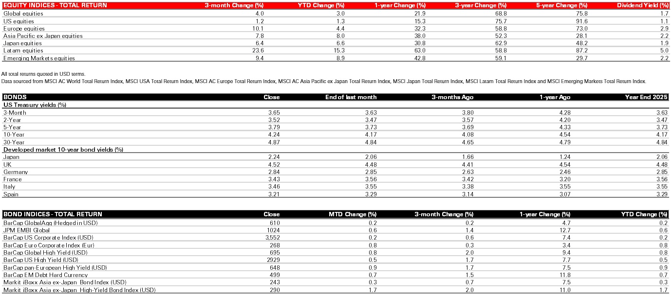 Sources: Bloomberg, HSBC Asset Management. Data as at close of business 31 January 2026. (*) Indices expressed as total returns. All others are price returns.