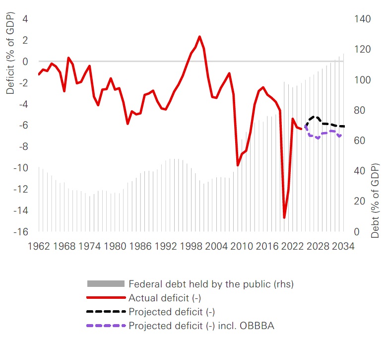 Source: HSBC AM, Bloomberg, CBO, Fed. Data as of September 2025.